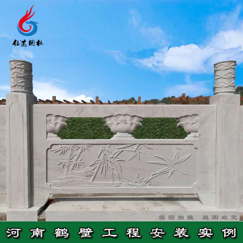 石栏杆有着美观、时尚、环保、抗老化、不变形的性能优点,可广泛用于市政、水利、公园、交通桥梁 、环城护河、别墅装修、等护栏工程。柱身的造型比较简单。柱头的形式种类很多,隋朝至元代多雕狮子、明珠、莲花,明清官式作法有莲瓣头、云龙头、云凤头、石榴头、狮子头、覆莲头、水纹头、火焰头、素方头等,民间风格的柱头形式比较自由。只有皇家宫室才能采用龙凤柱头,民间不得使用。 望柱与望柱之间的石栏板,是整个石栏杆中所占面积比例最大的部分,也是石雕工艺装饰的重点部位。